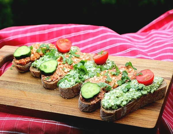 Beide Pestosorten mit je 200g körniegen Frischkäse verrühren. Frischkäsepesto