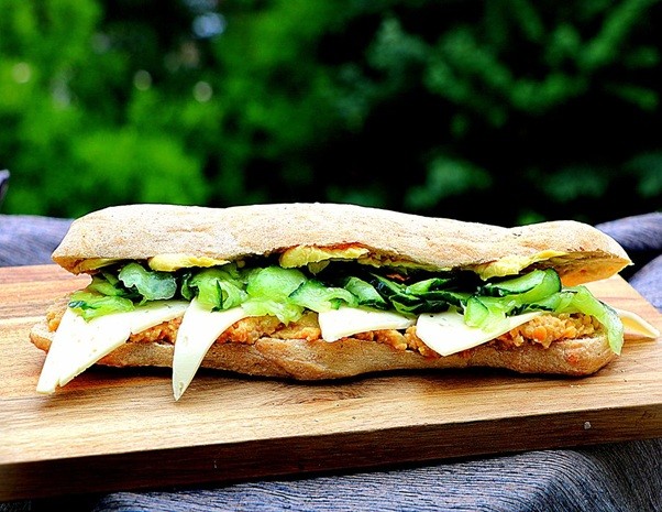 Gurken Käse Sandwich mit Zitronenbutter und Linsenaufstrich