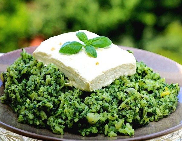 Den Reis abgießen und unter den Spinat Rühren. Spinatreis mit