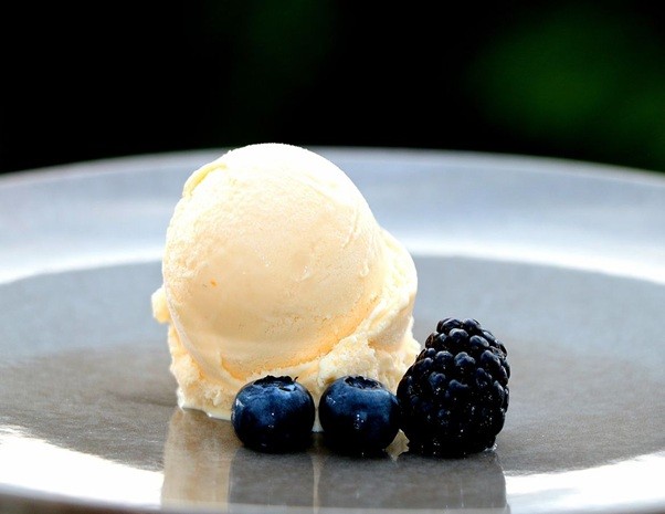 in die Eismasse Rühren. Die Masse in einer Eismaschine gefrieren lassen. Die Eismasse