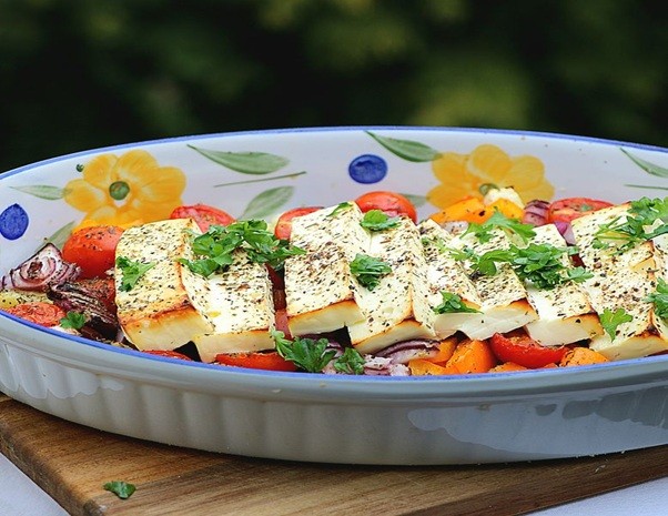 Das Gemüse in eine Auflaufform geben, mit Salz und Pfeffer würzen.