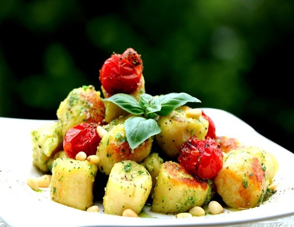 abschmecken. Erdnussöl in einer Pfanne erhitzen und die Gnocchi darin anbraten. Gnocchi mit