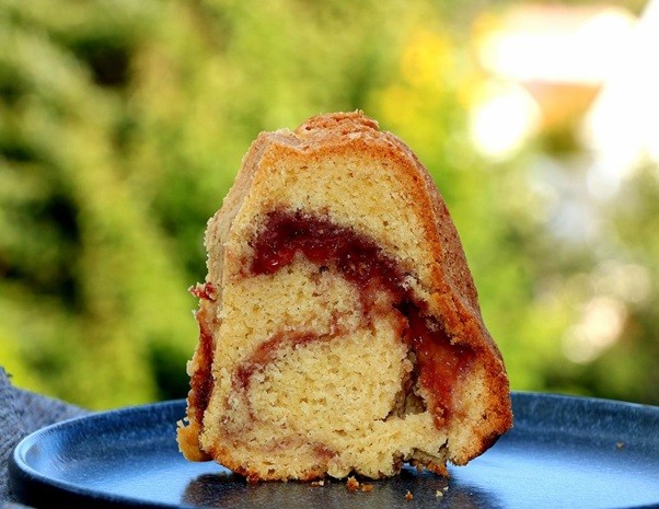 Marmelade mit einer Gabel marmorieren. Den Kuchen bei 180° ca. 50-60min backen.